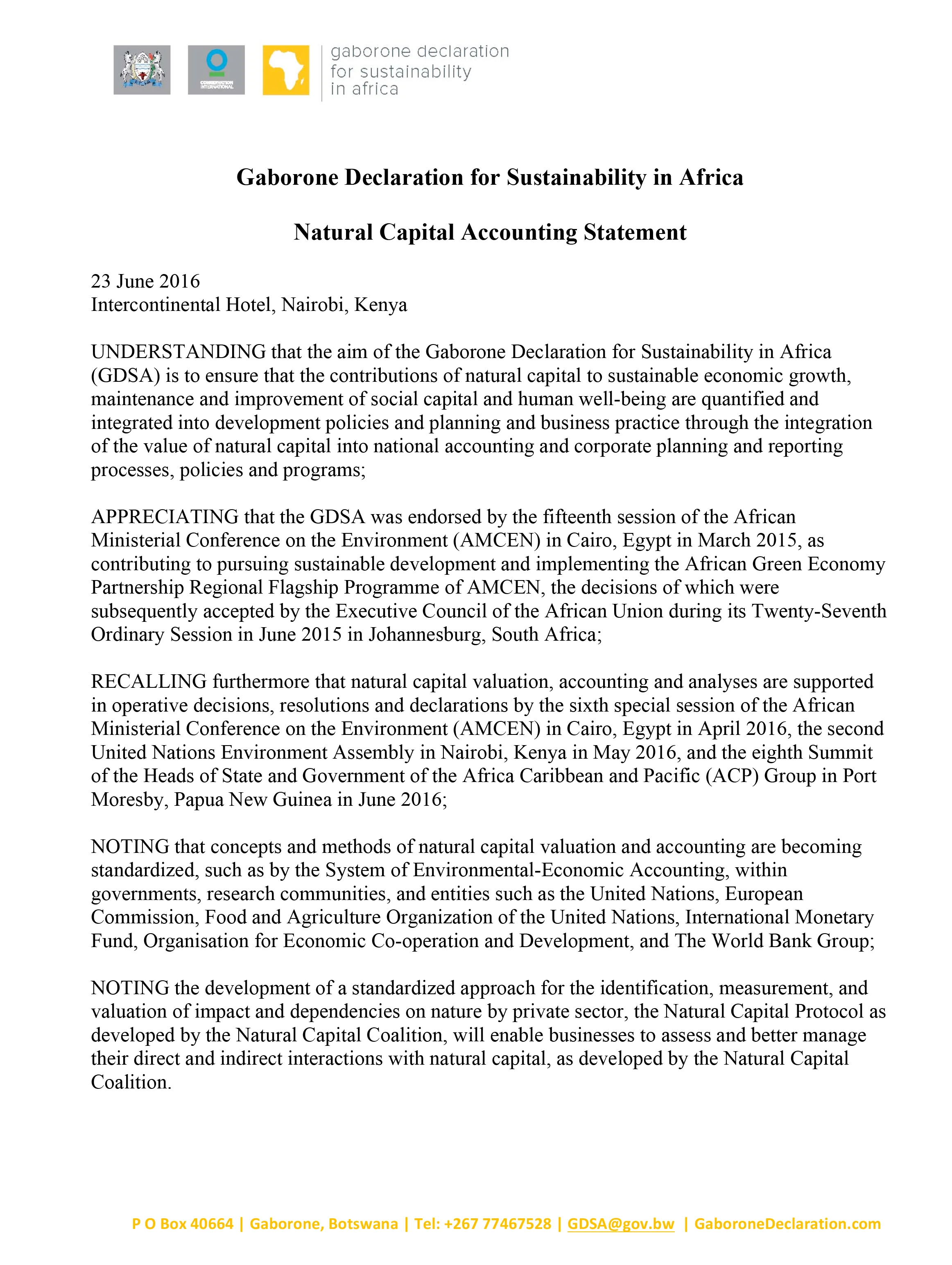 Through the Gaborone Declaration for Sustainability in Africa, countries are looking beyond national borders to preserve and manage Africa's vast natural wealth for future generations.